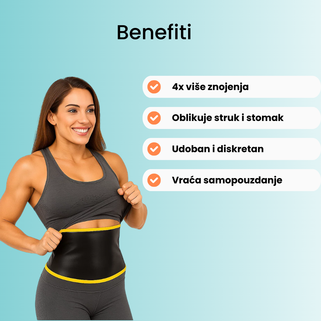 Da, pojas povećava znojenje i ubrzava sagorevanje kalorija. Uz redovno korišćenje, žene primećuju smanjenje obima struka i ravniji stomak već nakon par nedelja.