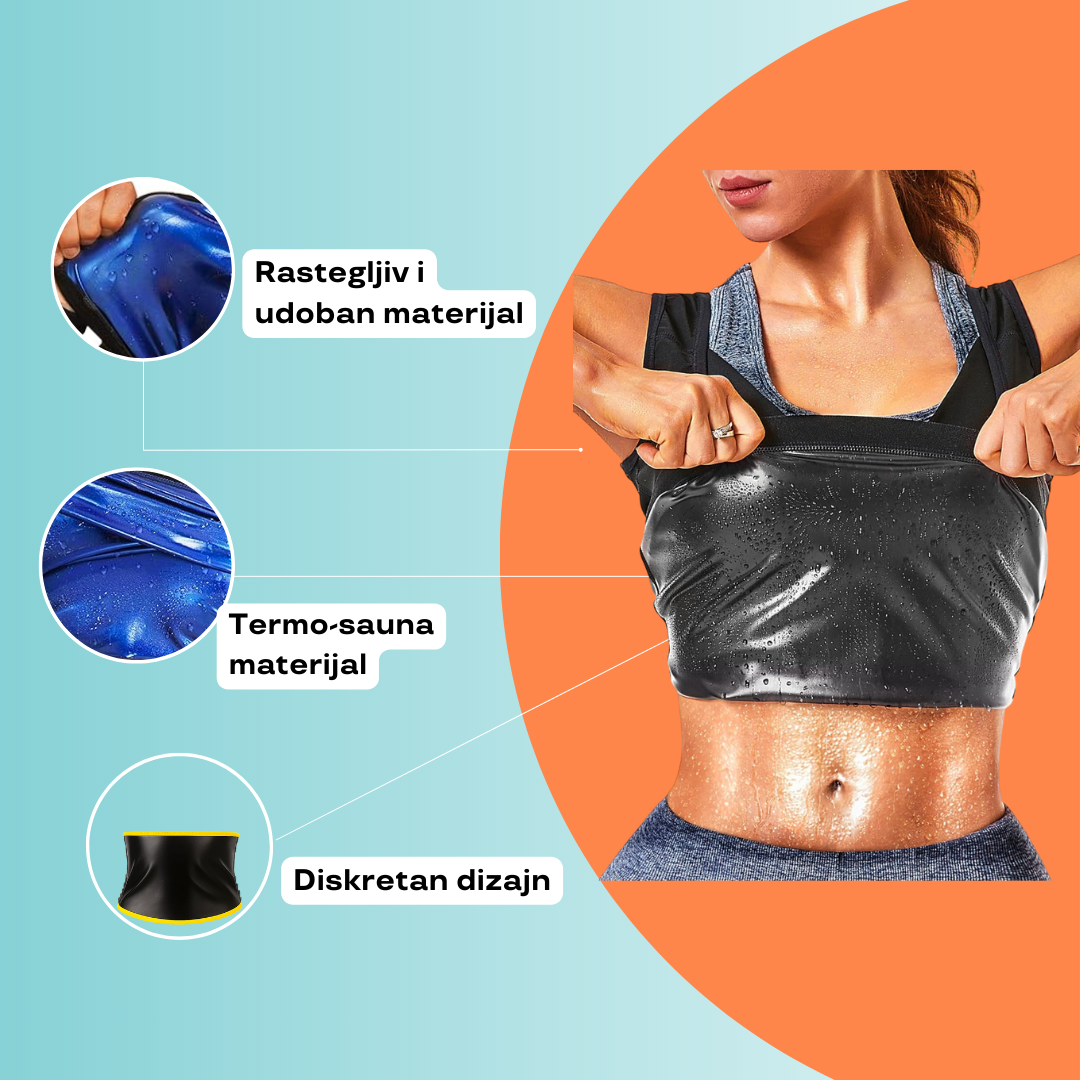 Naš sauna pojas pojačava znojenje do 4x više i pomaže ti da sagoriš kalorije brže nego ikad. Redovnim korišćenjem oblikuješ struk, smanjuješ obim i postižeš vidljive rezultate već za par nedelja.